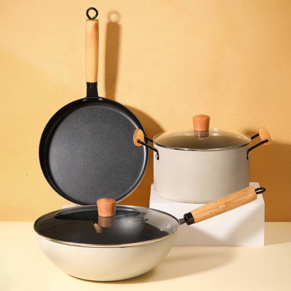 Kitchen Maifan Stone Coating Cast Iron Pot Set With Wooden Handle Images |